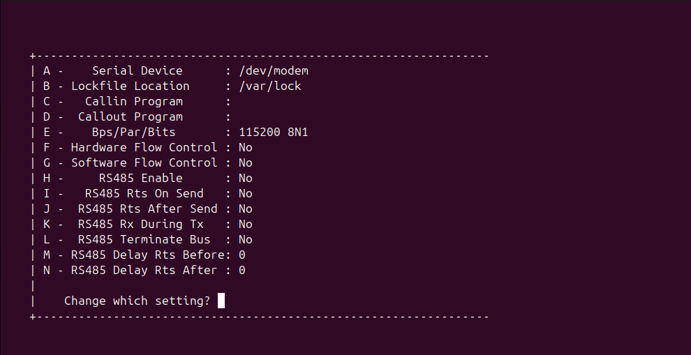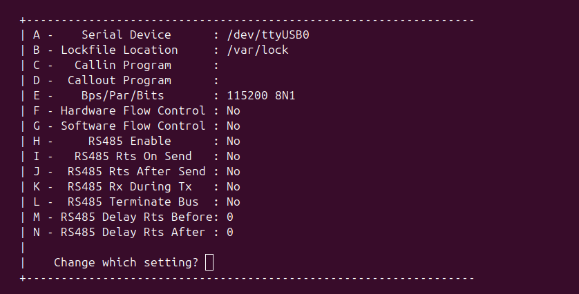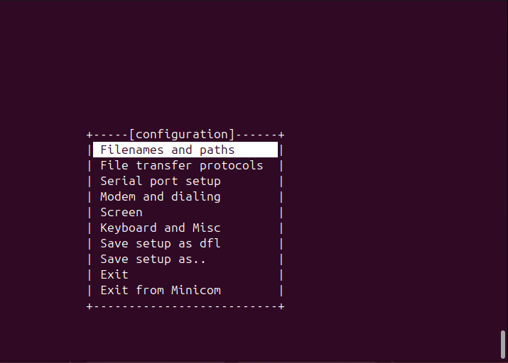 $ sudo minicom -s